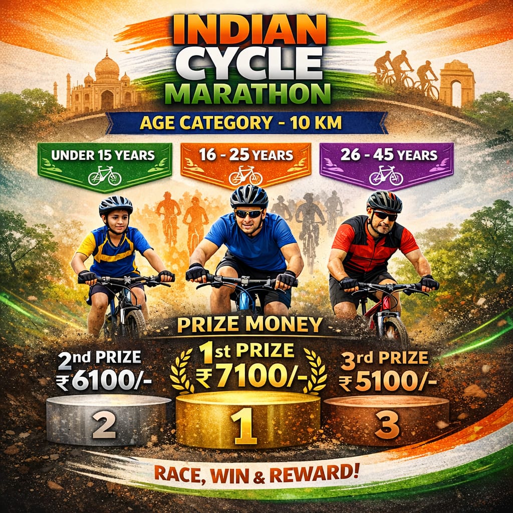 Indian Cycle Marathon is a cycling initiative designed to promote fitness, healthy living, and eco-friendly transportation across India. The event brings together people from different backgrounds who share a passion for cycling and an active lifestyle.